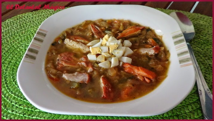 Servimos la sopa con unas tiras de pollo y un huevo cocido picado. Os aseguro que está riquísima. Por cierto, con estas cantidades me salieron tres platos.