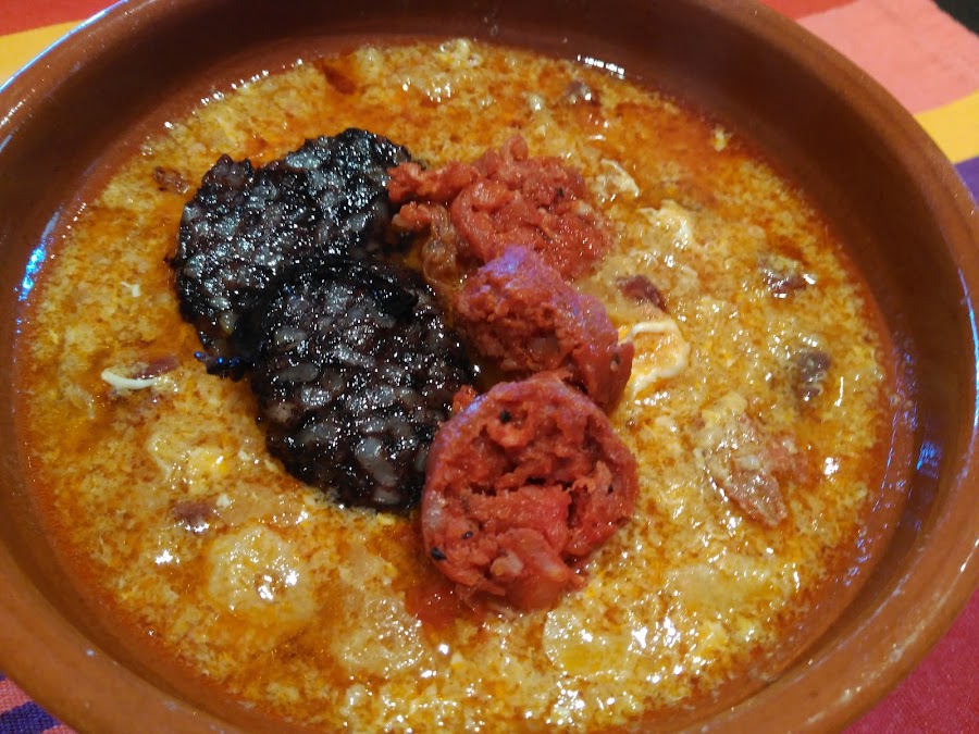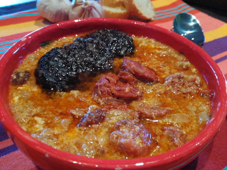 - Doramos la morcilla a rodajas en una sartén, y servimos las sopas con la morcilla por encima.
