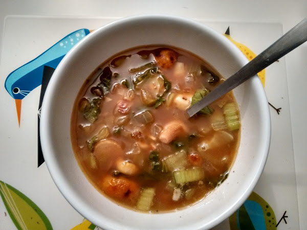 En una olla echad un chorro de aceite de oliva y sofreír el ajo y la cebolla. Cuando la cebolla empiece a estar transparente agregar el pak choi y saltear unos minutos. Echar el caldo de pollo, la salsa de soja y teriyaki y las setas. Dejar hervir unos 10 minutos y servir.