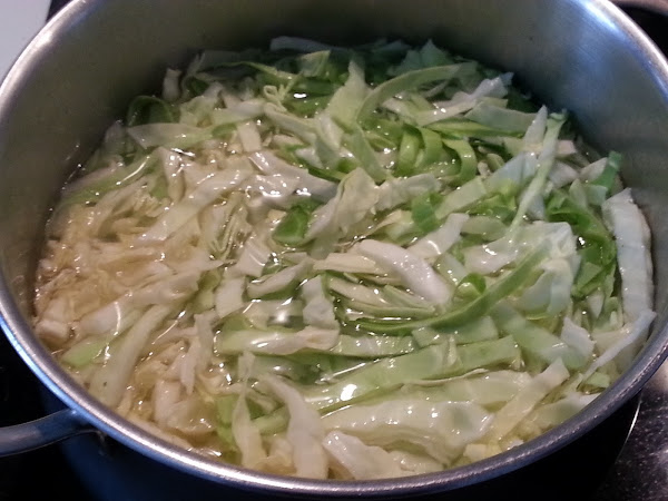 3. - Cuando el agua empiece a hervir, le añadimos la col cortada y esperamos a que vuelva a hervir.
