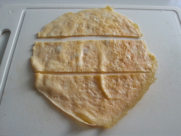 8. - Y por último, hacemos una tortilla con un poco de azícar (esto es opcional), muy fina, casi como un crep .