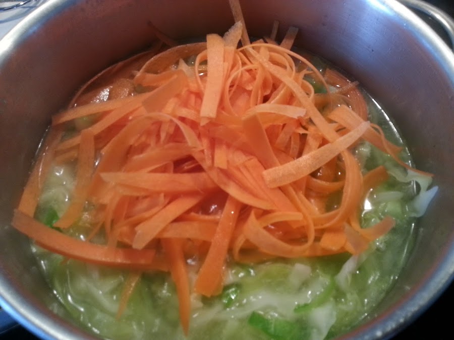 Así que el otro día Inma, del blog A falta de lexatín...buenas son tortas, la publicó, esta vez sin pollo, ella hizo una sopa china de col y zanahoria. Y ya sí que me decidí a hacerla....