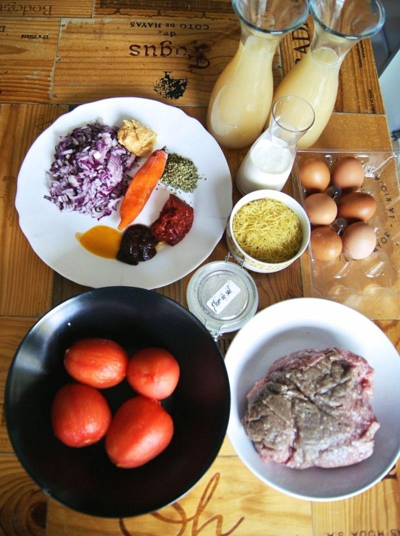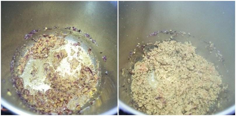 1. Calentamos a fuego medio-alto la mitad del aceite y sofreimos rápidamente la cebolla picada, al minuto añadimos los ajos molidos, ají amarillo y posteriormente la carne picada previamente salpimentada unos 2-3 minutos.