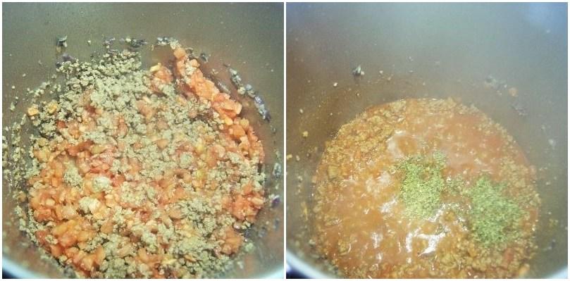 2. Añadimos el ají panca, ají mirasol y sofreír moviendo constantemente, a continuación hacemos lo mismo con la pasta de tomate concentrado y al minuto aproximadamente agregamos los tomates picados y el orégano seco.