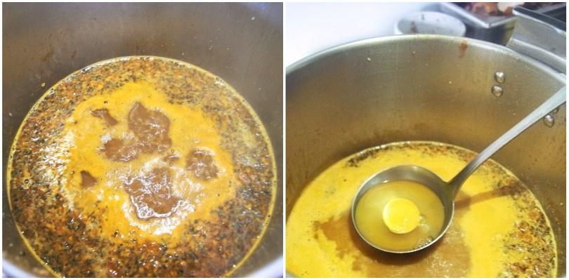 3. Agregamos el caldo y bajamos el fuego a medio-bajo, tapamos y dejamos cocinar unos minutos.