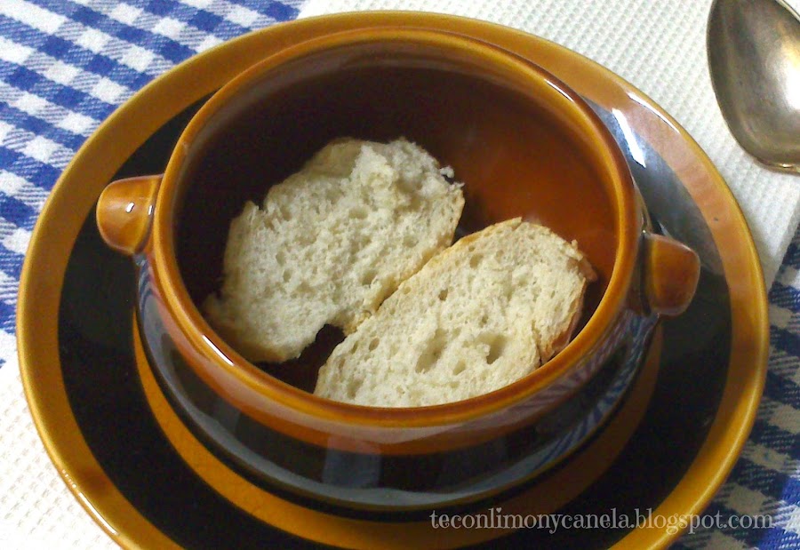 Para servir la sopa, he puesto en cada plato una rebanada o dos de pan (son pequeñas...).