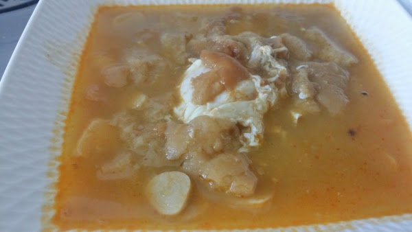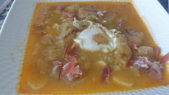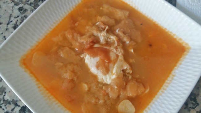 6- A continuación sube el fuego para que hierva la sopa. Cuando hierva casca los huevos y ve añadiéndolos uno a uno a la sopa. El calor de la sopa cuajará los huevos en poco tiempo.