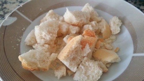 El pan duro hay que cortarlo en lonchas finas y no demasiado grandes.
