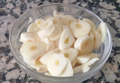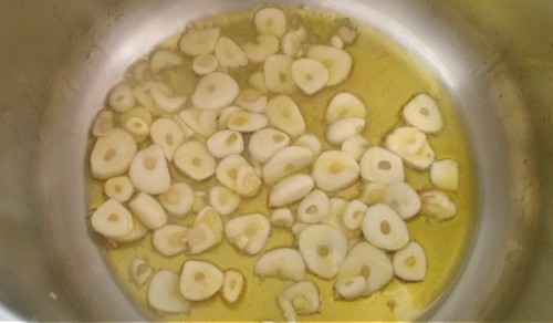 2- Pon en una cacerola el aceite a calentar a fuego medio. Añade los ajos