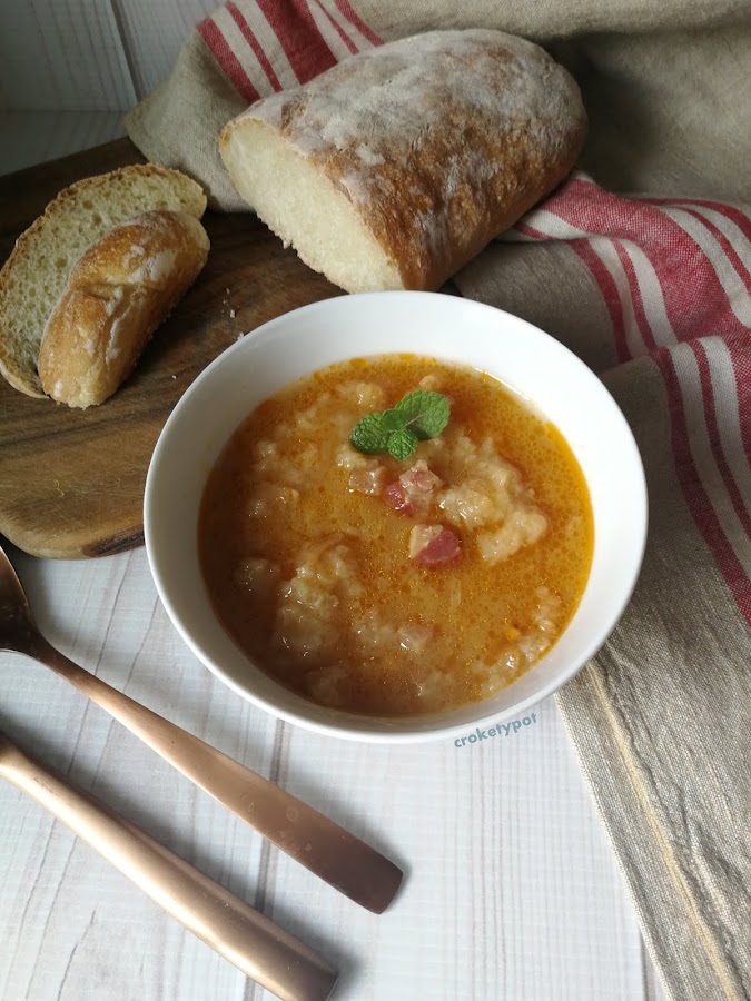 INGREDIENTES: Pan del día anterior, ajo, pimentón dulce, unos tacos de jamón (opcional) y caldo básico Aneto de pollo.