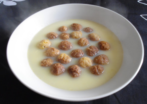 En una cacerola ponemos agua, y se le echa las dos yemas que teniamos reservadas sal y limón, y cuando el caldo esta caliente se le añade las albondigas se dejan unos minutos y listo.