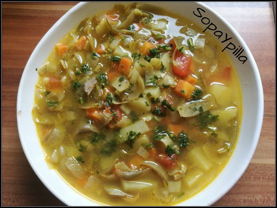 Aprovechando la temporada de alcachofas os traigo una sopita deliciosa, vegetariana y que nos encantó para una cenita ligera...probadla, es sana y rica!!