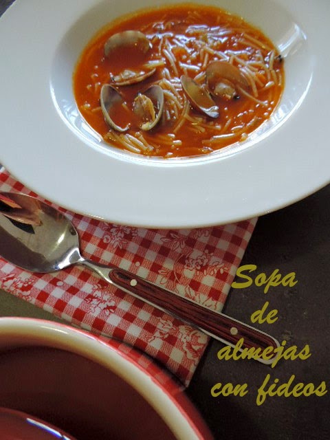La sopa de almejas es una receta de Karlos Arguiñano,le tenía echado el ojo hace días solo me faltaba que llegase el frío para poder degustarla y como hoy ha amanecido el día lluvioso,aunque la alegría a durado poco,tan solo ha sido un chaparrón,pero si nos ha dejado un airecito mucho más fresco que estos últimos días,así que ya tenía el día perfecto para preparar esta sabrosa sopa de almejas.
