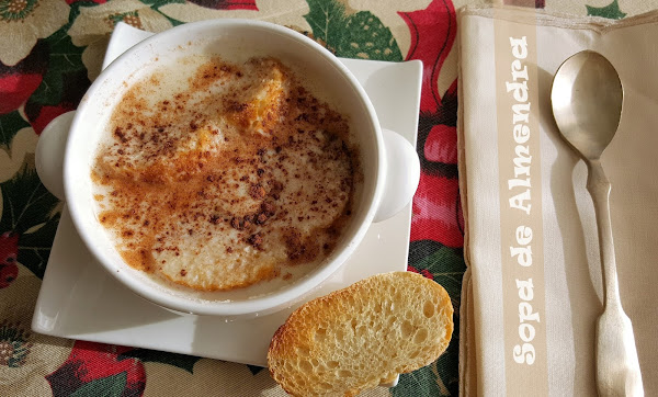 Al pensar en este postre vienen a mi memoria las canciones de pascua que para estas fechas se escuchan en mi pueblo por calles, bares y casas al son de la zambomba, el almirez y la botella (esto es algo que después de muchos años de estar en Madrid y cuando se acercan estas fechas echo muchísimo de menos, aún no puedo acostumbrarme a no escuchar este sonido a pesar de todos los años que llevo aquí, es como si la Navidad no fuera Navidad), no puedo evitar pensar en el calor de un hogar junto a tu familia y amigos tomando una rica sopa de almendra, aunque sea media tarde.