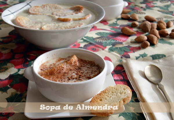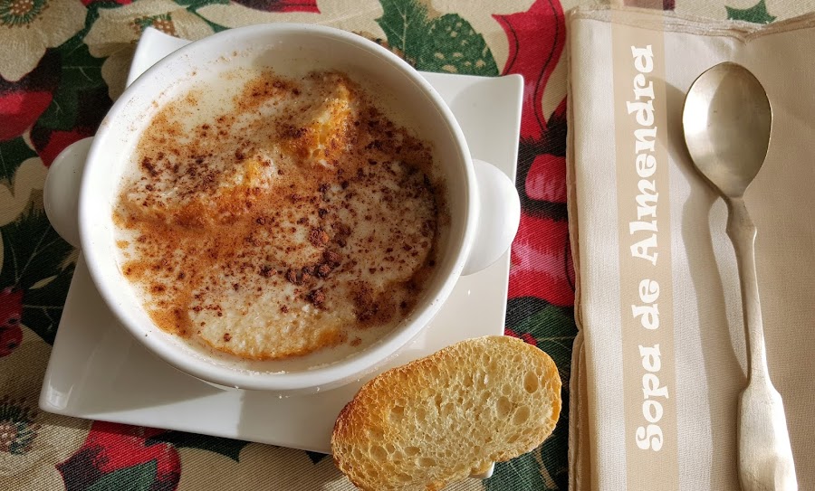 La receta de sopa de almendra que os traigo es una preparación culinaria navideña. Es tradicional servirla al final como postre, antes de los turrones y los dulces de estas fechas. Es muy típica en la zona de Castilla y desde luego en Toledo. Los ingredientes utilizados provienen de la masa del mazapán por lo que se estima que pueda tener la misma procedencia morisca y conventual. En su elaboración intervienen muy pocos ingredientes pero eso no le resta riqueza al plato, que puedo aseguraros es delicioso.
