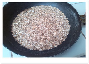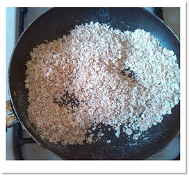 Poner a cocinar el agua en una olla, mientras que en un sartén pequeño se pone a tostar la avena revolviendo para que no se queme, hasta que tenga coloración dorada.