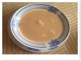 Unos 5 minutos antes de sacar del fuego la sopa, echar el otro pedazo de queso, desmenuzarlo y revolviendo.
