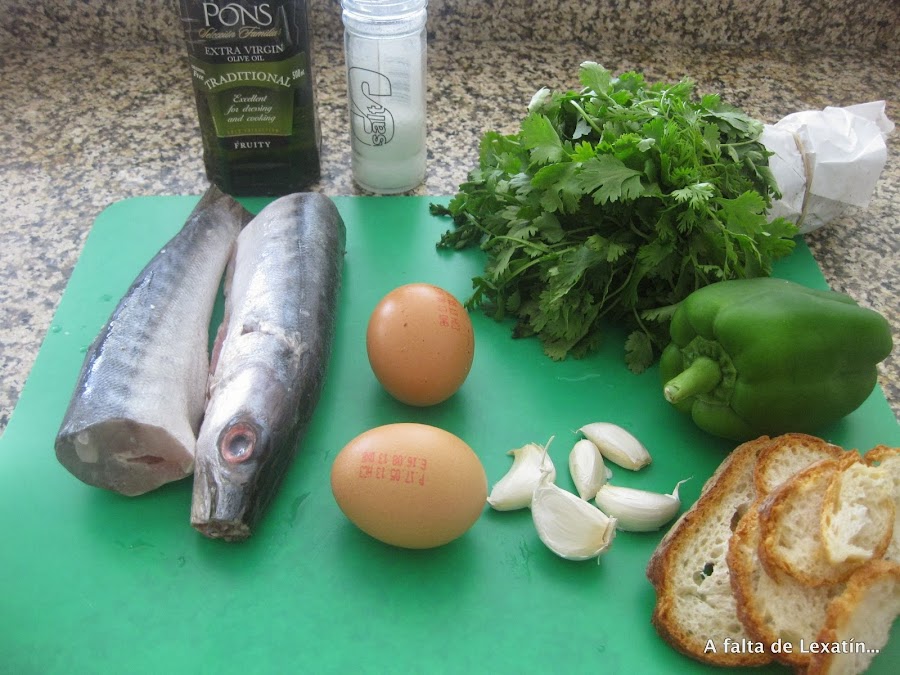 Se puede hacer con pescada o con bacalao desalado, como yo no tengo aquí de ninguna de los dos, utilicé barracuda que es lo más parecido a una pescadilla que ví, el sabor que da al caldo es bastante similar y la sopa queda estupenda, las niñas ni protestan y mira que lleva "verde"