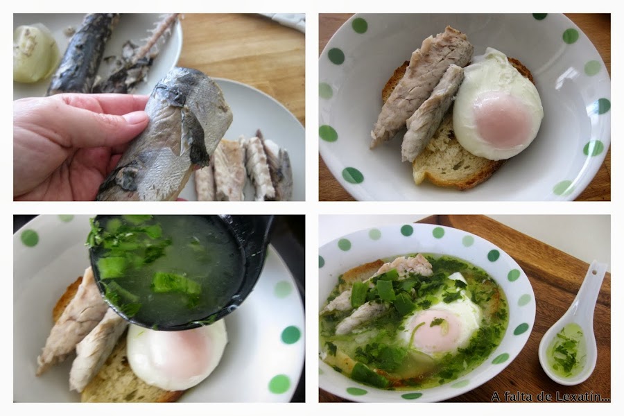 Me encanta esta sopa, es una variación de la "açorda alentejana" adaptada al pescado que tengo aquí.