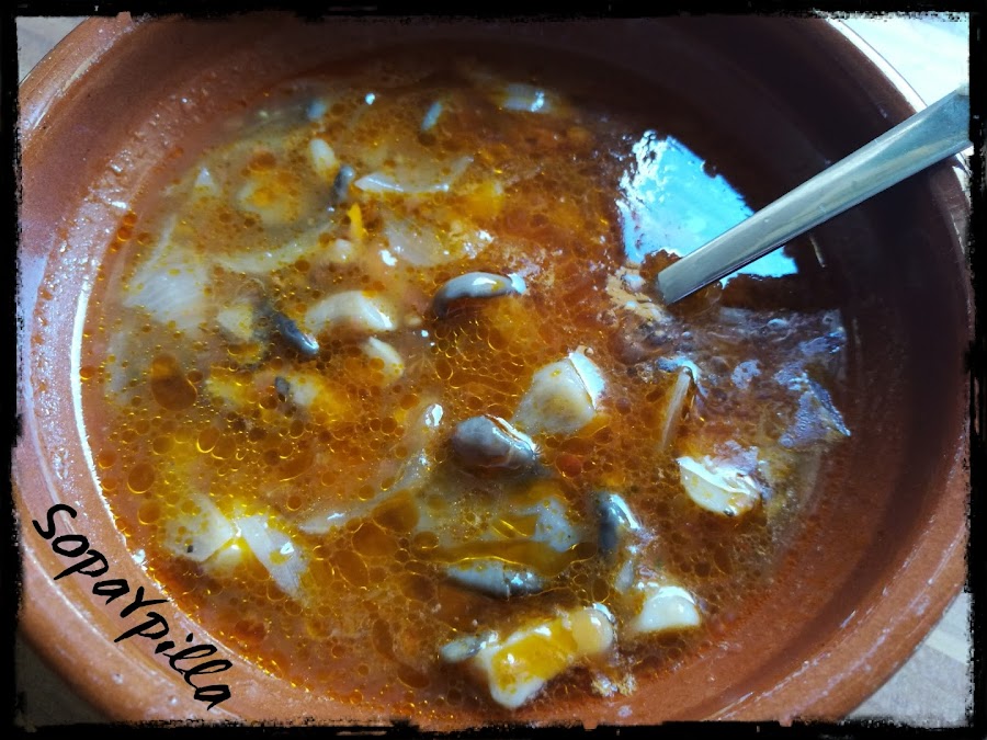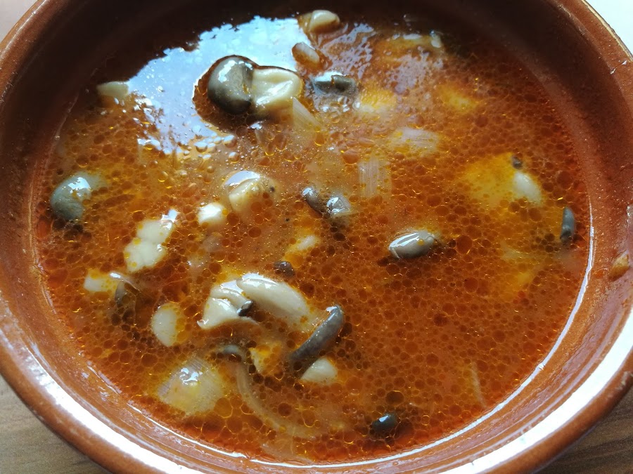 - Añadimos el caldo y las setas y dejamos hervir unos minutos. Listo!