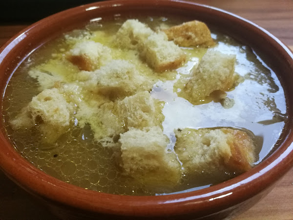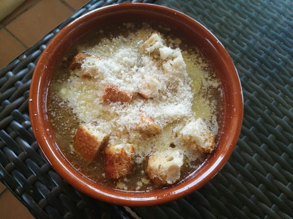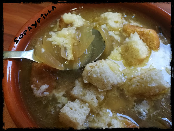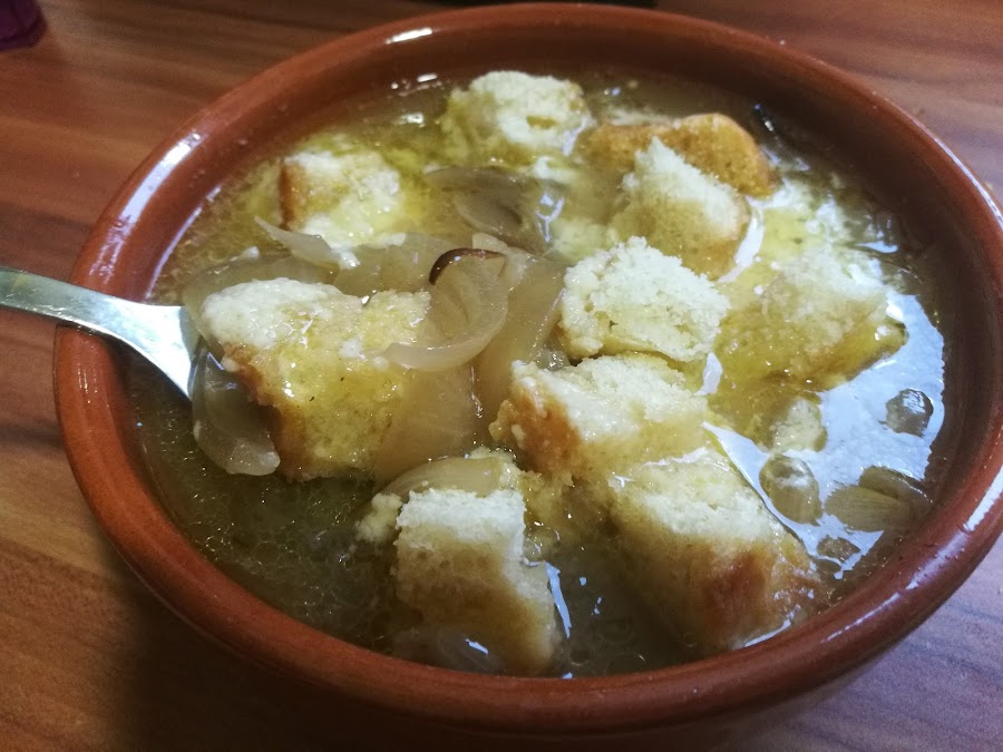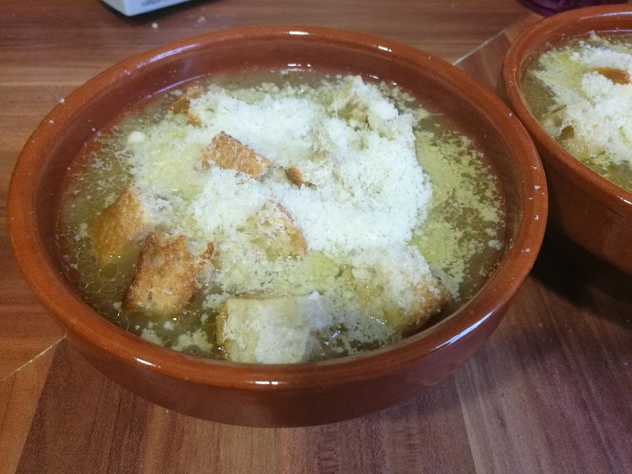 - Salpimentamos y servimos en cuencos, con el pan tostado cortado y el queso por encima.