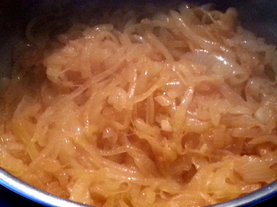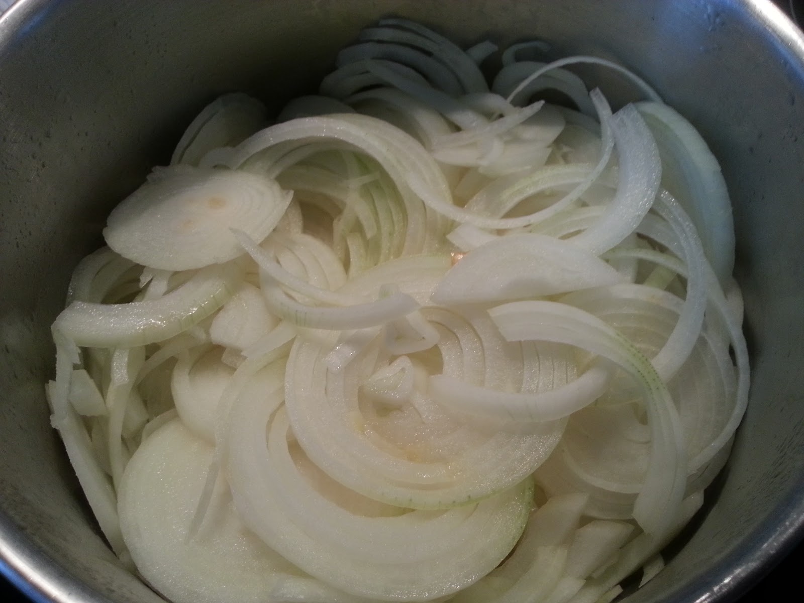 1. - Lo primero que haremos será poner a pochar la cebolla cortada en rodajas finas, con la mantequilla, más o menos 30 minutos, removiendo de vez en cuando.