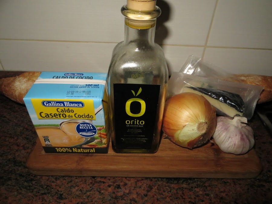 Una vez que está cocinada la cebolla, añadís el caldo y lo dejáis durante 25 minutos más, mientras tanto untáis las rebanadas de pan duro con ajo, si no tenéis pan duro, tostar el pan. Una vez que han pasado los 25 minutos añadís el pan duro y ralláis el queso por encima. Apagáis el fuego y antes de servir gratináis un poquito al horno y ya está vuestra sopa lista.