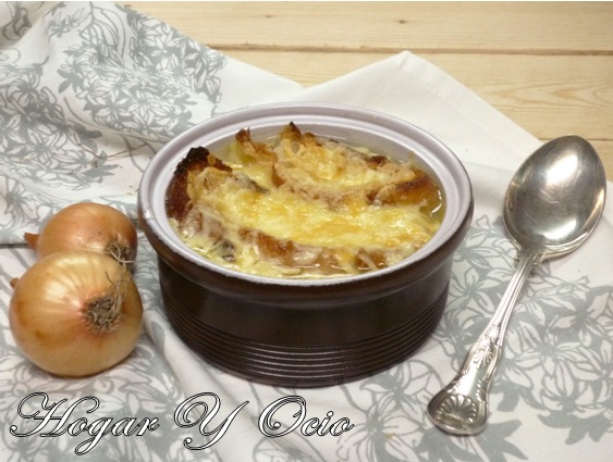 8. Retiramos del fuego y ponemos la sopa en cazuelitas induviduales (aptas para horno) , en cada una añadimos dos rebanadas de pan tostado y queso rallado por encima.