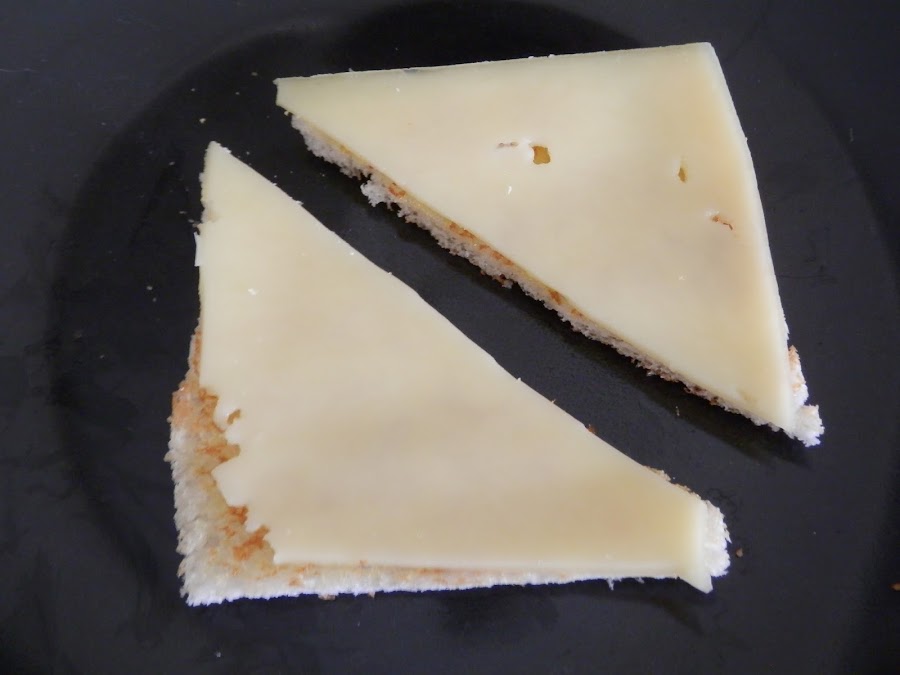 Ponemos encima del pan un poco de queso y dejamos que el queso funda.