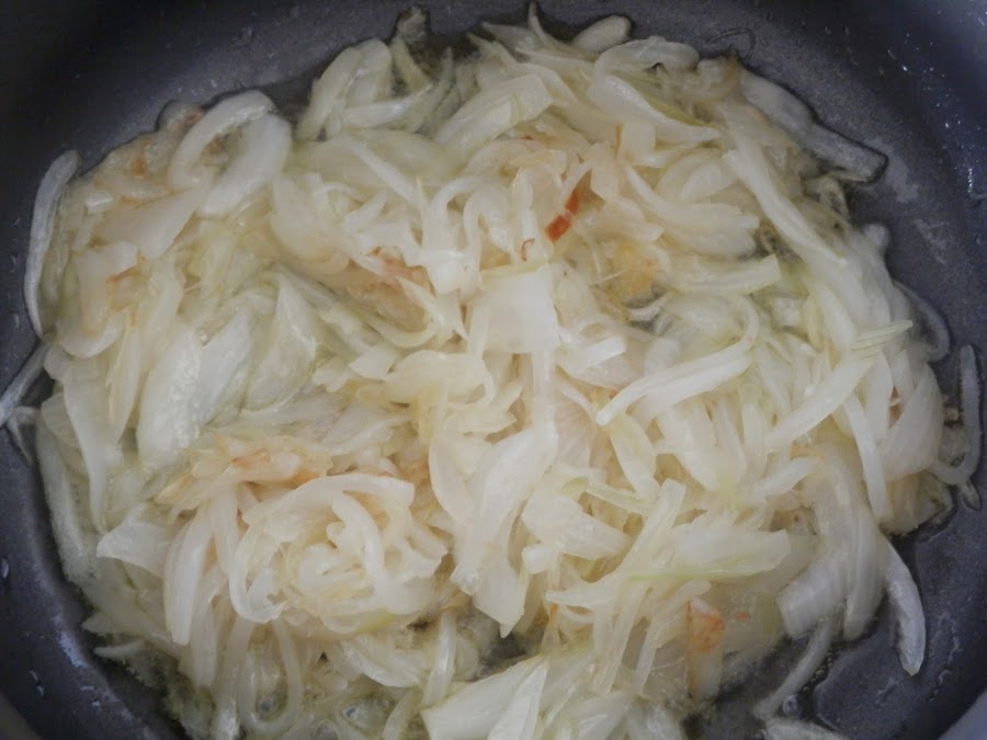Dejamos pochar lentamente hasta que la cebolla esté transparente.