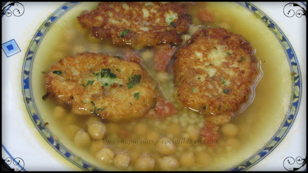 Yo además os voy a contar la receta del relleno de mi abuela que tantos buenos recuerdos de la infancia me traen, much@s os preguntareis que es eso del "relleno", pues bien, cada maestrillo tendrá su librillo y lo preparará de una manera, pero básicamente el relleno es una receta típica del cocido castellano hecha con huevos batidos, pan rallado o pan duro cortado finito, tocino usado en el cocido, ajo y perejil, se cogen porciones de esa mezcla con una cuchara sopera y se fríen en aceite de oliva para posteriormente agregarlos a la sopa del cocido para que cojan el sabor del caldo. Ya se me ha hecho la boca agua solo escribiéndolo aquí, así que voy al lío con la receta.