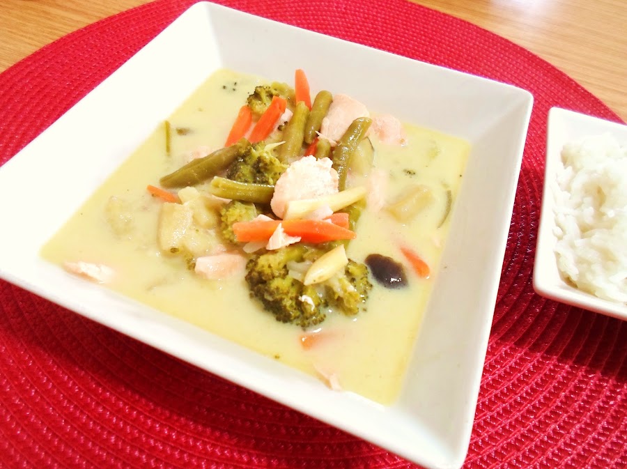 NOTA: Los filetes de salmón se deshacen solos, no hay que trocearlos. Se sirve con arroz basmati cocido, una delicia.