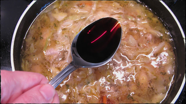 Dejar que comience a hervir y tenerlo a fuego lento 15 minutos. Añadir las cucharadas de salsa de soja. Probar y rectificar de sal si fuera necesario. Reposar unos minutos mas y servir.