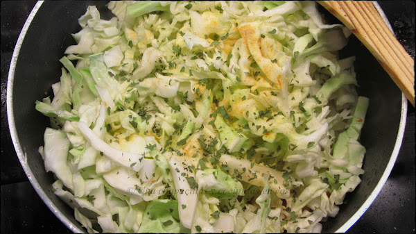 Añadimos la col a la cazuela junto con el cilantro y la cucharadita de jengibre, rehogamos unos minutos mas.