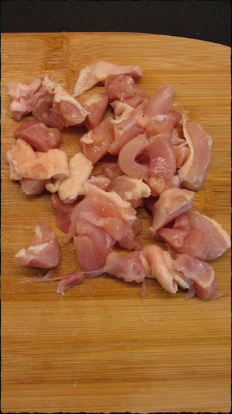 Ahora cortar el pollo en trozos y salpimentar.