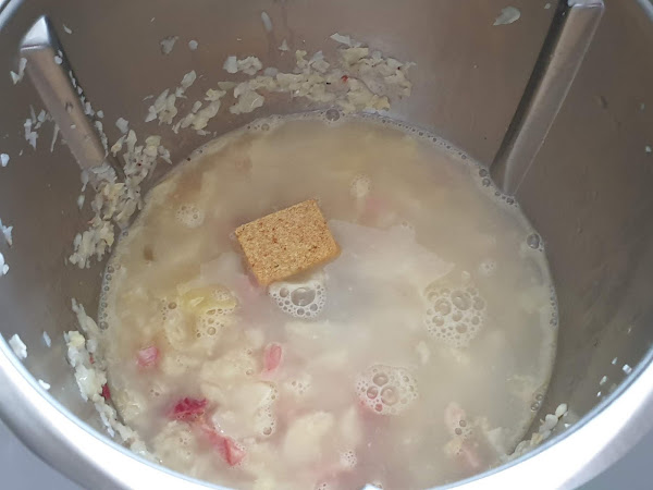 4. - Añadimos el agua y la pastilla de caldo y lo dejamos cocer durante 15 minutos.