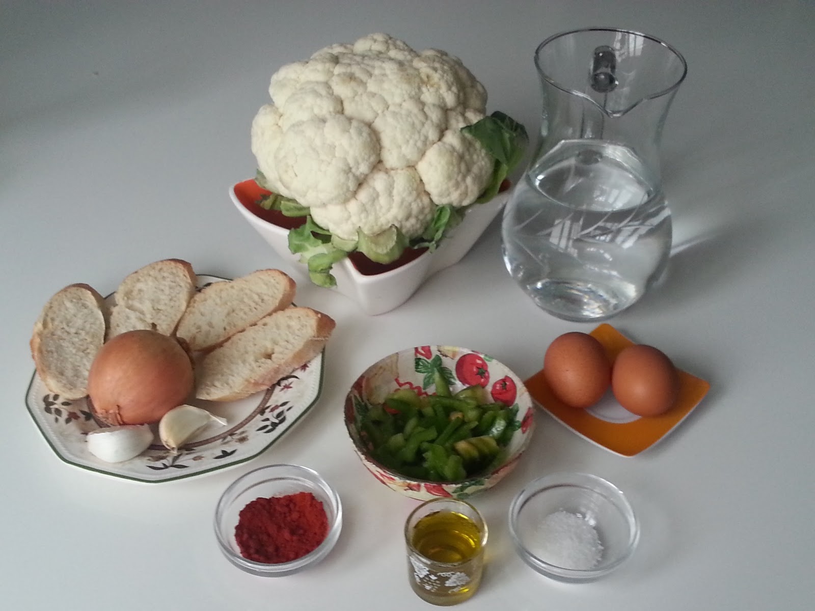 Pues hoy toca una sopa ligera en cuanto a calorías, pero reconfortante y con un sabor de los de toda la vida, una sopa de coliflor, parecida a las sopas de ajo, pero en vez de pan ponemos coliflor.