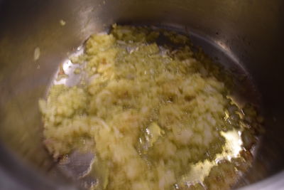 Calienta aceite en una cacerola. Añade la cebolla y ajos muy picaditos junto con el jengibre. Sofríe a fuego lento. Incorpora el cilantro, cúrcuma y cominos molidos.