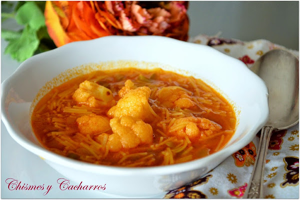 Por último añadir los fideos y dejar cocer 5 minutos. Servir.