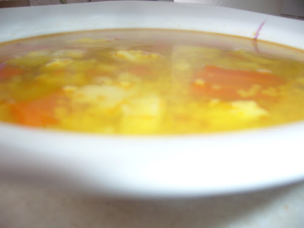 Aparte refreímos cebolla, echamos el pescado ya cocido y pimentón y lo añadimos al caldo en el último minuto que tendremos nuestra sopita yo la hago de lluvia, se puede hacer de pan o fideos como os guste...