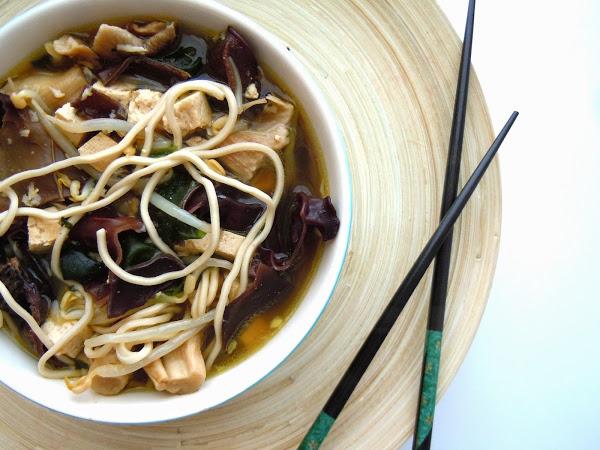 Repartir los fideos en tazones grandes y verter la sopa caliente sobre ellos y a comer!!