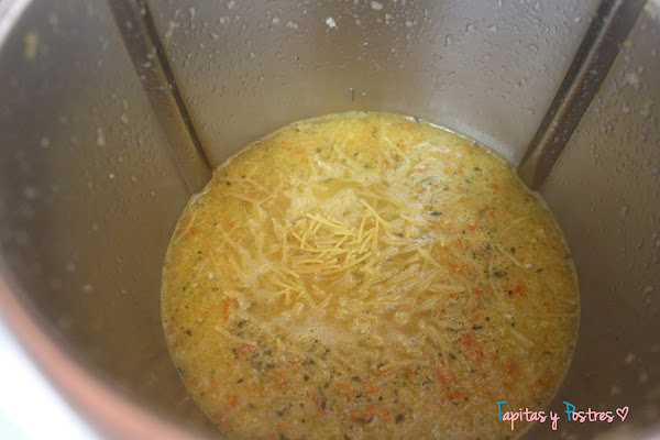 Agregamos el agua y las especias y cocinamos 7 minutos a 100º y velocidad 1.