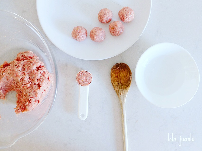Yo suelo utilizar una cucharada medidora para que todas salgan iguales y con esta medida salen 30 albóndigas.