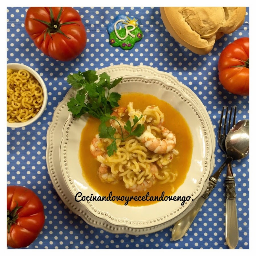 Hola a tod@s!! hoy os traigo una receta que os encantará. Es una sopa de gambas, fácil y rápida de hacer, ideal para preparar un plato de lujo con esas gambas congeladas que solemos tener en el congelador. La receta original es de thermomix, pero yo la he preparado a "mi manera" y la he cocinado más sencilla, ahorrando tiempo, la de thermomix es preparando un fumet con las cabezas de gambas y yo me he saltado ese paso haciendo un truco (de esas ocurrencias que nacen de la desesperación por falta de tiempo ;) jijijiji) y que resultó espectacular!! yo os recomiendo que lo uséis en más ocasiones, cuando necesitéis más sabor y no tengáis tiempo de preparar caldo o fumet ;) Bueno os cuento la receta ya...
