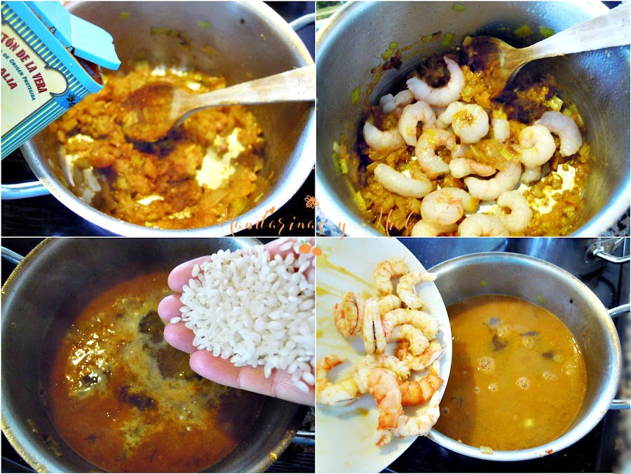 En la misma cazuela donde has sofrito las gambas prepara la sopa: