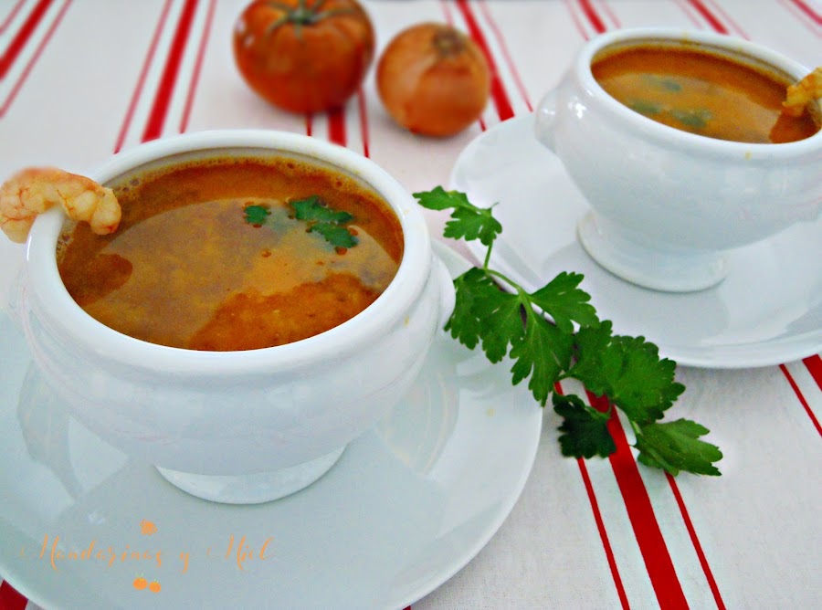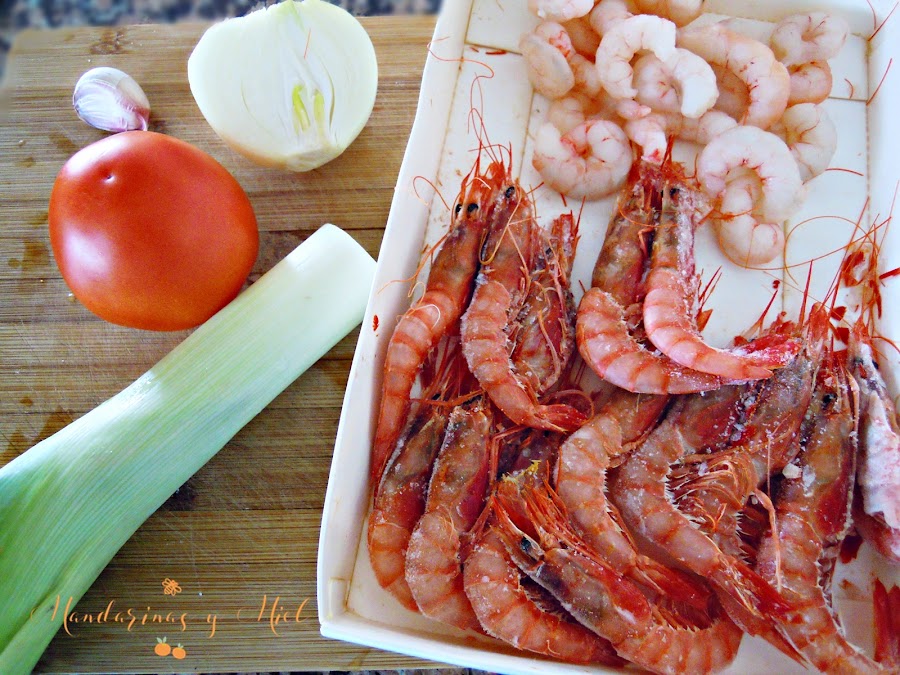 Mirando en el congelador he visto que tenía casi vacía, la caja de gambas rayadas que compré para Nochebuena y de la que he ido sacando para otras comidas. También he visto que me quedaba media bolsita de gambas peladas.....pués está claro, voy a preparar una rica sopa con ellas!!