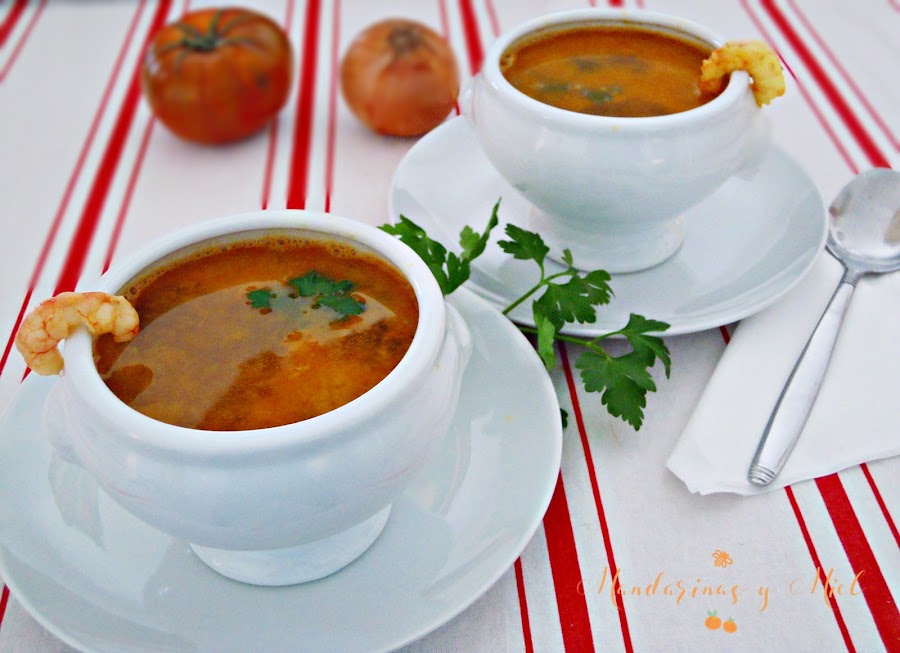 Mirando en el congelador he visto que tenía casi vacía, la caja de gambas rayadas que compré para Nochebuena y de la que he ido sacando para otras comidas. También he visto que me quedaba media bolsita de gambas peladas.....pués está claro, voy a preparar una rica sopa con ellas!!