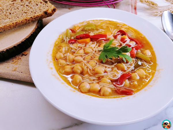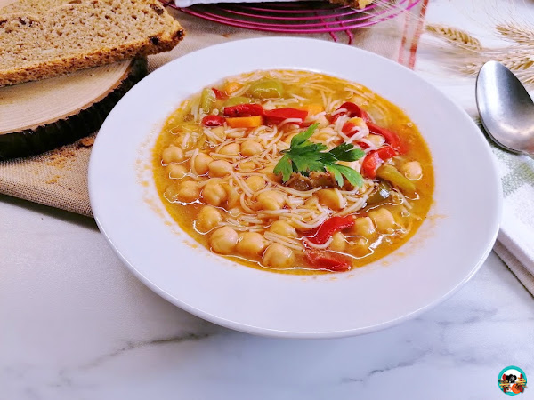 Hoy tengo para cuando refresca un poco y llueve, una rica sopa de garbanzos con fideos.