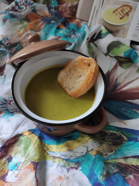 Echamos el caldo ( 1.8 l.) sobre las verduras. Añadimos los guisantes. Mezclamos bien todo y esperamos a que rompa la ebullición. Cuando vuelva a hervir, lo dejamos en un suave hervor durante 10 minutos. Mientras tanto preparamos las hojas de menta.