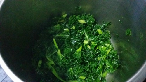 Añadimos la kale que hemos reservado, cortándola en trocitos pequeños.
